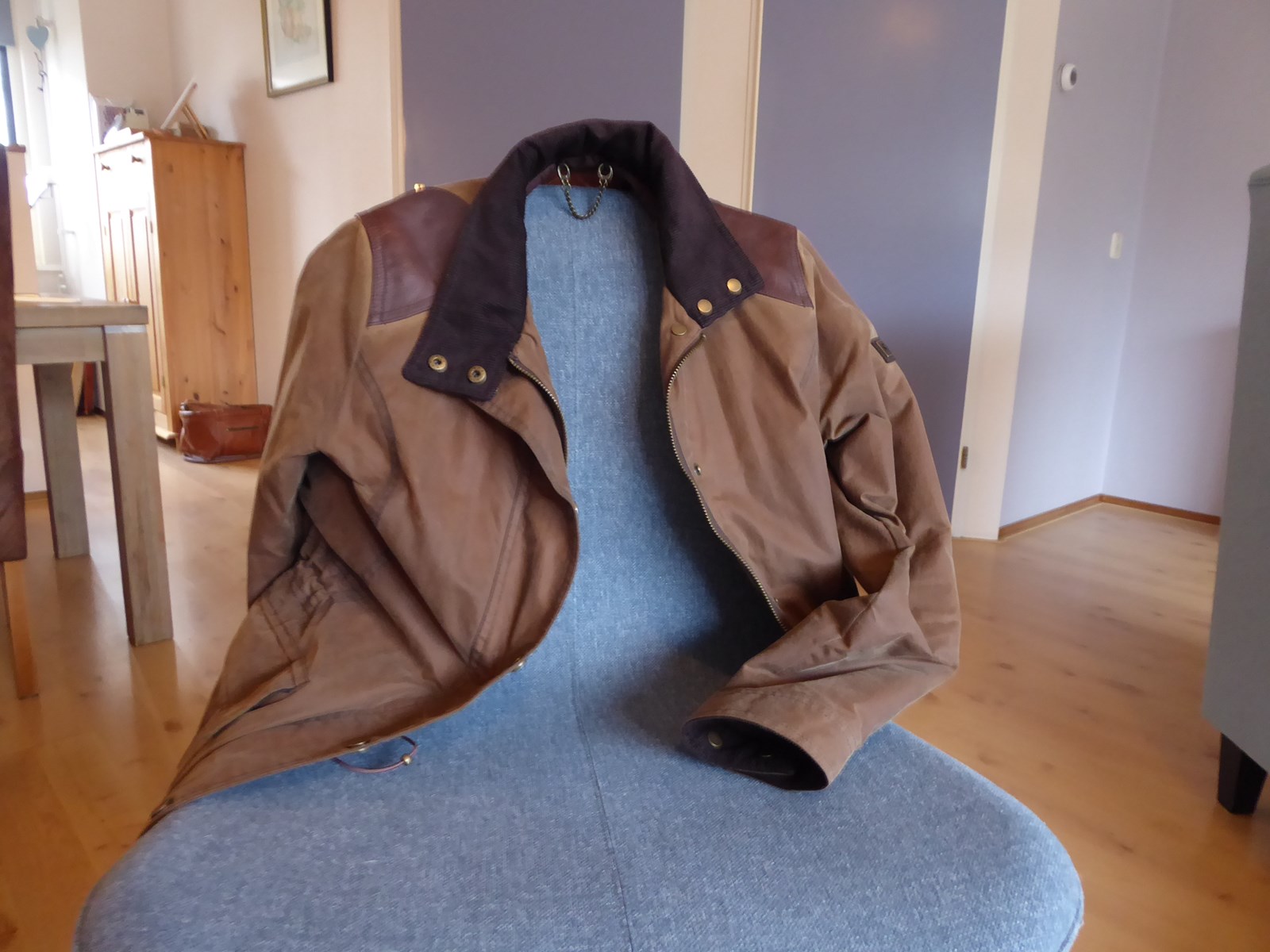 Naderhand bleek dat de jas zich wel om het zadel weet te wurmen, de mouwen zijn te kort en de rits is een ramp om dicht te krijgen.